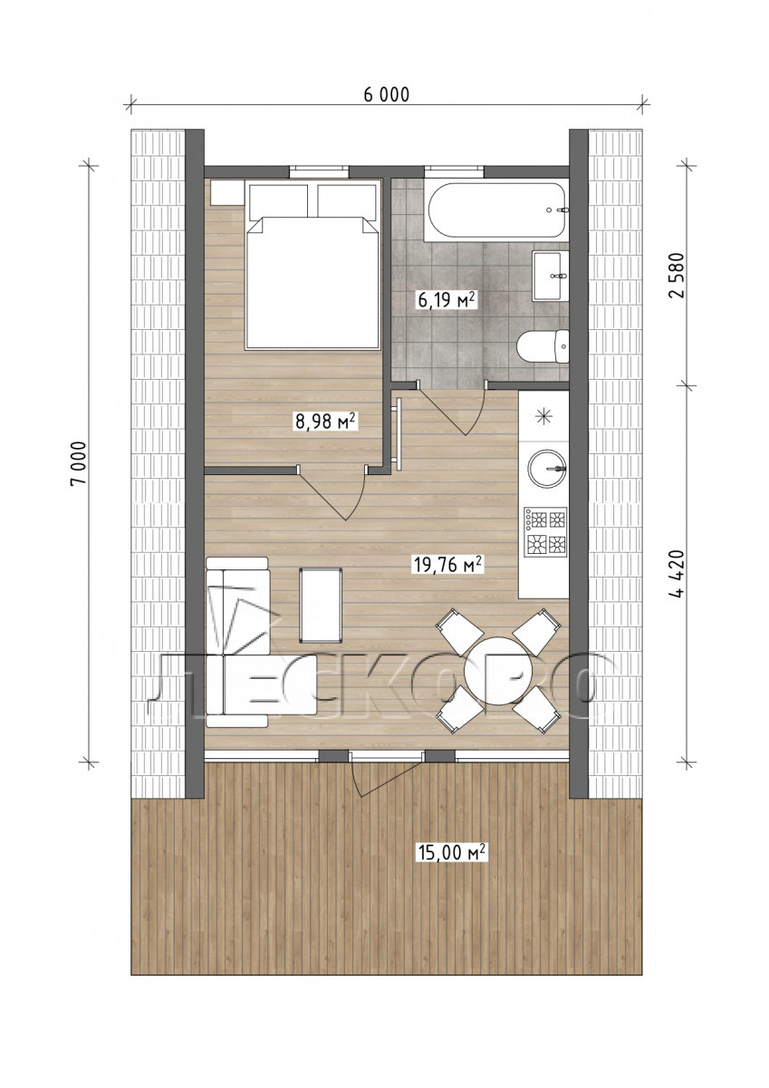 • Чистовые полы на верандах и балконах: палубная доска 35х144 мм сорт АБ,